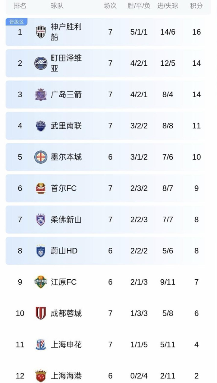 在目下的亚冠东亚赛区积分榜上,海港6轮0胜2分垫底,申花7轮1胜4分名次倒数第2,蓉城7轮1胜6分倒数第3。申花如故提前1轮被淘汰,海港接下来即便2战全胜,最多也等于8个积分,与柔佛新山、蔚山HD目下的积分握平,海港晋级淘汰赛的但愿极小,蓉城的晋级可能也不大。