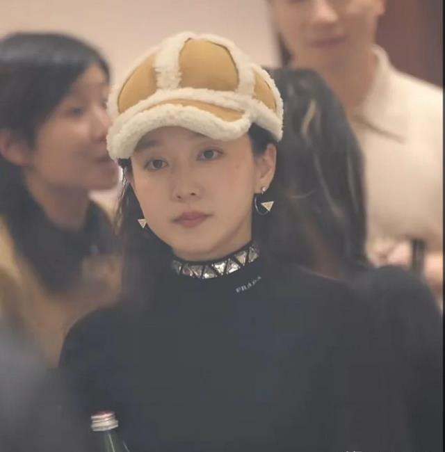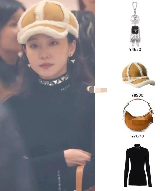 夫唱妇随,她亦然独处的Prada,一件玄色的毛衣更衬出她的朱唇皓齿。
