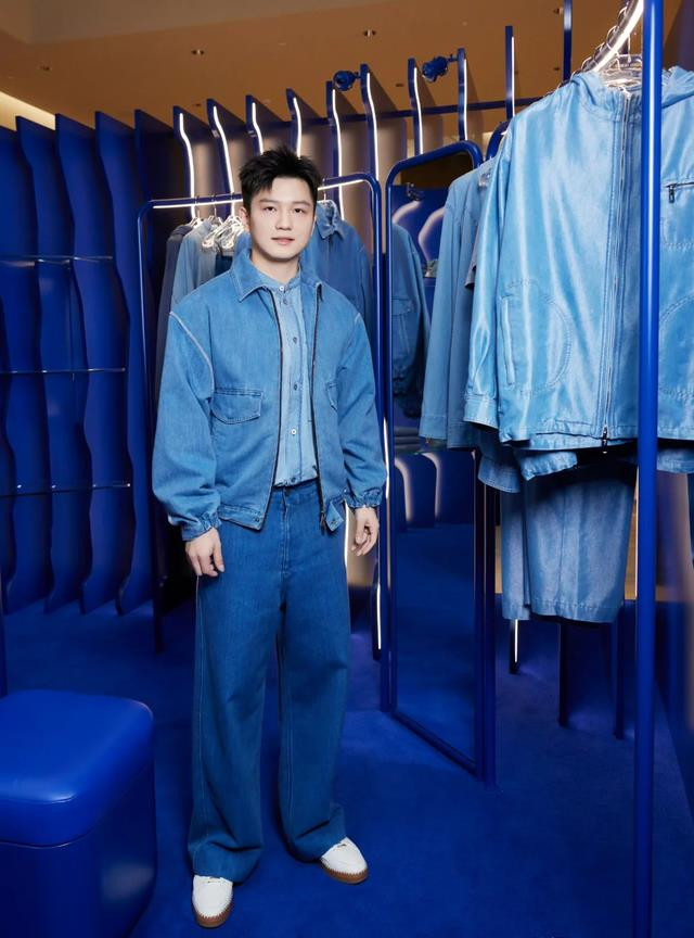 这身2025春夏系列的亮蓝夹克搭配东说念主字毛呢长裤,竟有时地和马龙至极相等。