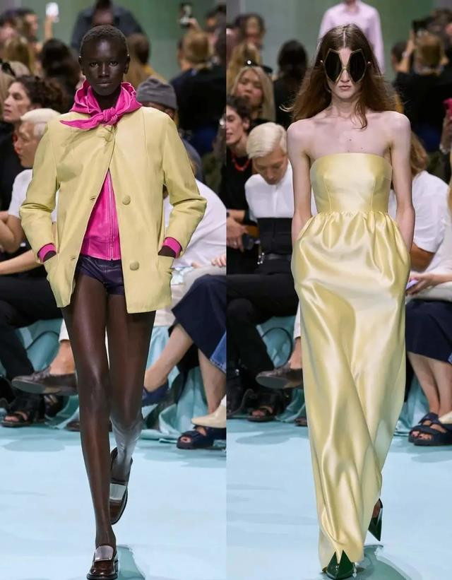 而在19日晚看Prada的秀时,马龙则是换了一种饱和不相通的作风。